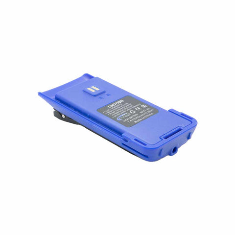 Replacement battery for Rugged Radios R1 handheld radio. Features a built-in 12v charge port and includes a belt clip.